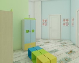 Уютные и светлые помещения, в которых круглый год поддерживается комфортная температура, обставлены современной мебелью. Здесь есть столовая, игровая комната, класс для развивающих занятий, спальня с удобными кроватками, коридор с индивидуальными шкафчиками. Ежедневно в помещениях проводится влажная и дезинфицирующая уборка.